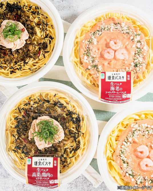 商品名: 「鎌倉パスタ監修 生パスタ 高菜と鶏肉のピリ辛パスタ」「鎌倉パスタ監修 生パスタ 海老のトマトクリームパスタ」