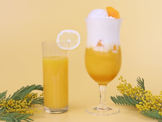フローズンマンゴーとバニラアイスクリームをトッピングしたデザートドリンク。