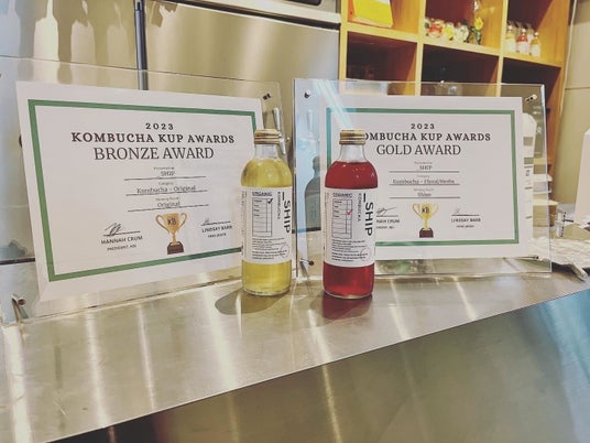 その後「_SHIP」は、2023年4月にアメリカで開催された世界最大級のコンブチャカンファレンスにて、コンブチャの世界一を決めるコンペティション「Kombucha Kup Award」のオリジナル部門で「ORIGINAL」が3位、ハーブ部門で「SHISO」が1位を受賞。