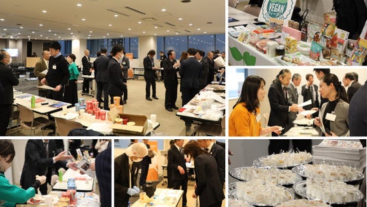 総会の後半では、構成員企業が開発・販売するプラントベースフード、ハラルフードの試食会を実施。企業活動の紹介などを通じて、構成企業同士の交流を深めるとともに、UTRTの活動における企業間協力を交わしました。