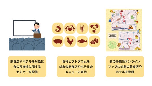 今後UTRTでは、食材ピクトグラムの拡大を図るとともに、旅前・旅中・旅後の外国人観光客へのPR、新メニュー開発、食の多様性体験会(ガストロノミーツーリズム)、UTRT構成企業同士のマッチング支援・食の多様性コンサルティングなどにも取り組んでいく予定です。