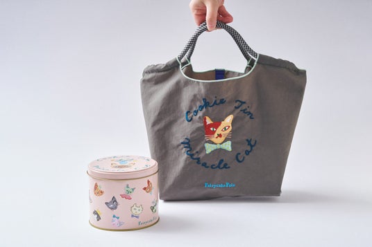 デザインやプロダクトの力を通して世の中を元気にしたいという想いで生まれたバッグブランド「Ball&Chain(ボールアンドチェーン)」と、手づくりお菓子のたのしさを伝えるフェアリーケーキフェアがコラボレーション。人気のお菓子「“神様のいたずら”ネコクッキー缶」のイラストデザインをモチーフに、ユニークで可愛らしいミラクルキャットたちの刺繍を施したスペシャルコラボバッグです。