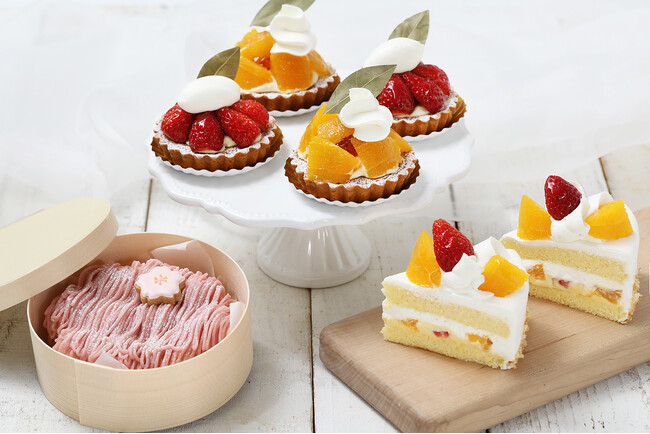 「ピネード」の人気商品『プチモンブラン』の季節限定フレーバーで昨年もご好評いただいた『さくらのプチモンブラン』、アールグレイのゼリーを中に忍ばせた『デコポンのタルト』、『苺のタルト』、デコポンと苺が爽やかな『季節のショートケーキ 苺&デコポン』で春のはじまりを彩ります。
