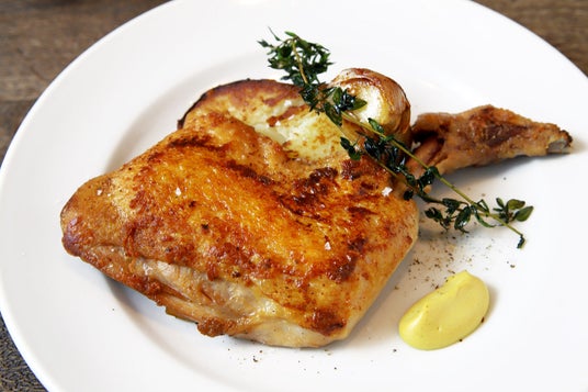 大ぶりなもも肉を低温の油でじっくり調理した、ビストロならではの一品。