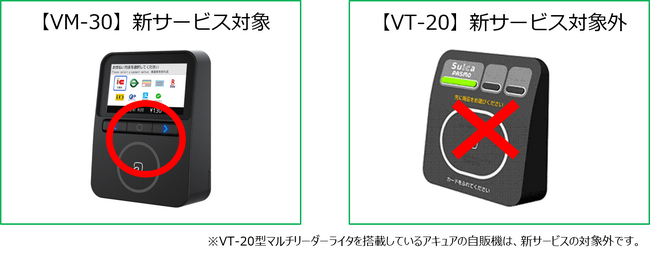 VM-30型マルチリーダライタが搭載されているアキュアの自販機のうち、JRE POINTのマークが画面に表示されている自販機が新サービスの対象です。