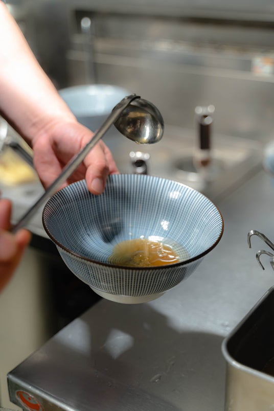 出汁 水と真鯛の中骨のみを使用し、丁寧に炊いた真鯛スープは黄金色に透き通った旨味の結晶