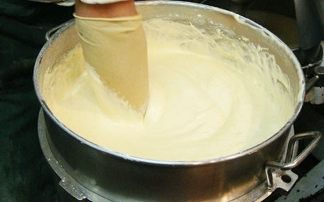 製造工程2合わせて各乳業メーカーの最高品質の生クリームを使用し、自社ブレンドすることで、口どけの良いクリームシャンティ(ホイップクリーム)に仕上げています。