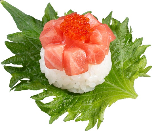 旨みある本鮪とろぶつととびこ、大葉の風味が相まったおいしさが楽しめます。