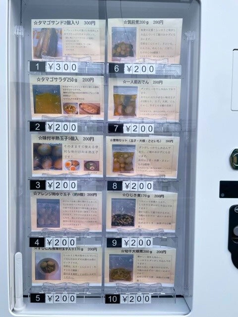 自販機では、同社が手作りで製造する新鮮で美味しい卵、味玉、卵サラダ、筑前煮など、様々な商品を24時間365日いつでも提供しております。