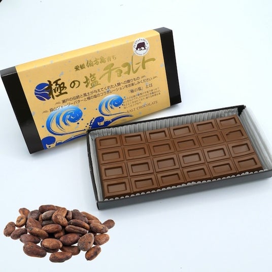 『千重子の公演の時にはいつも愛媛の銘菓を販売しています。チョコレートはいつもグッズの商品の中に入れてるんですが、伯方の塩さんが入ったチョコレート!甘いだけじゃ物足りない方にピッタリよ!