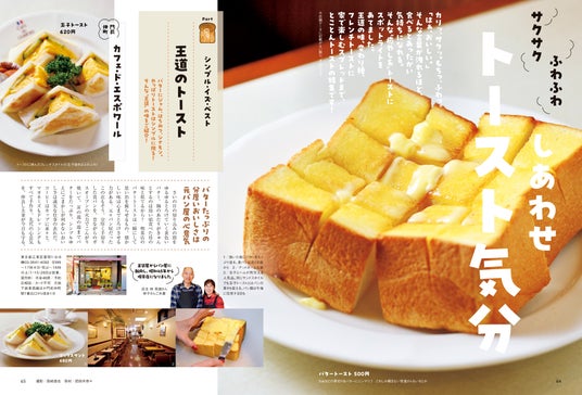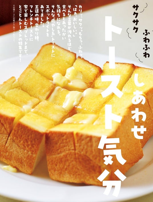 王道の味、変わり種、フレンチトーストに家で楽しむスプレッドまで、とことんトーストの特集も掲載。カリッ、サクッ。もちっ、ふわっ。「はぁ、おいしい。」そんな言葉が洩れるほど、食べるとあったかい気持ちになれる。そんな“癒やし系”にスポットライトをあてました。