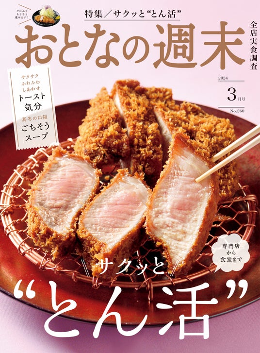今号の大特集は、「とんかつ」。高級店から普段使いの店、惣菜店のとんかつまでご紹介します。ほか、サクサクふわふわ、喫茶店を中心にお届けする「トースト」、真冬の口福「ごちそうスープ」特集もあります。