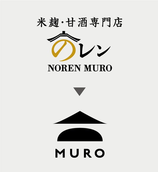 新しいロゴマークは、麹室(こうじむろ)で作られる麹の集積と、その建物の屋根を表現したシンプルでモダンなデザインで表現しました。麹の専門店としてのプロフェッショナルさと、麹の伝統と革新を融合させたMUROブランドのイメージに相応しいシンボルマークとなっております。