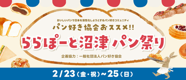 三井不動産商業マネジメント株式会社(本社:東京都中央区、代表取締役社長:大林 修)が運営する三井ショッピングパーク ららぽーと沼津では、「一般社団法人 パン好き協会」が県内外から厳選した35店舗ものパン屋を集めた「ららぽーと沼津パン祭り」を2月23日(金・祝)~25日(日)に開催いたします。サイトURL:https://mitsui-shopping-park.com/lalaport/numazu/event/2661200.html
