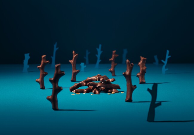 版画家 大谷一良さんの作品「森の見る夢」の木々をモチーフにした3つの形のチョコレートが特徴です。