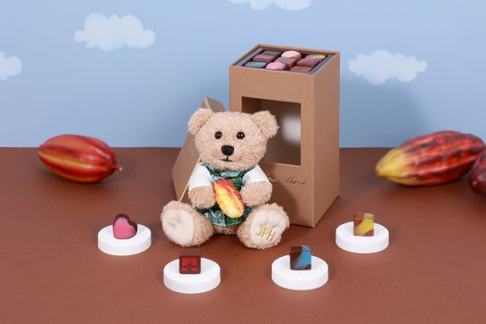 また毎年人気のベアは、カカオ農園を旅するジャン=ポール・エヴァン自身がカカオポッドを抱えている姿をイメージしています。パリへの想いと共に、ジャン=ポール・エヴァンのホワイトデー限定コレクションをお愉しみください。