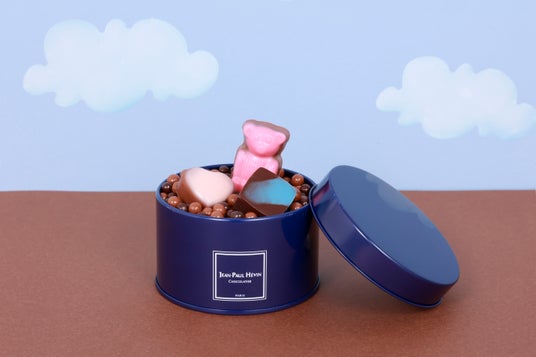 モナムール WD■モナムール WDクマの形、ハート、期間限定のショコラ「シエル ドゥ ニュイ」をペルル クラッカントゥと一緒にブルー缶に詰合せ。