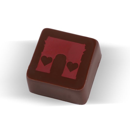 トリヨンフ■トリヨンフライム香るパイナップル風味のガナッシュをビターチョコレートでコーティング。凱旋門をイメージしたデザイン。
