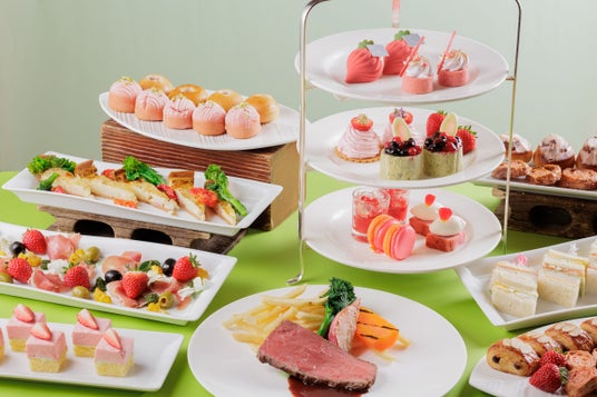 ウイークエンドでは、春を感じるスイーツやセイボリーを充実させ、お好きなだけお召し上がりいただけるブッフェメニューが登場。ティースタンドに並ぶスイーツのほか、季節感溢れるセイボリーやブレッド、ヴィーガンメニューまで、充実したラインナップをお楽しみいただけます。また、テーブルにお運びするスペシャリテ「宮城県栗原市産黒毛和牛のローストビーフ」は、ティータイムを極上なひとときへと誘う逸品です。