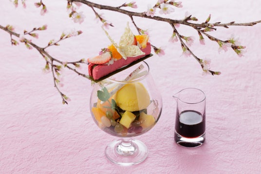 また、ラウンジ&バー ホライゾンでは、春の訪れを感じさせる『シーズナルパフェ~春望(しゅんぼう)~』を発売いたします。さくら寒天のジュレや、よもぎのチョコレートでコーティングしたあんことバニラのムース、フレッシュな清見オレンジなど9種類を盛り込んだ、パティシエの自信作です。
