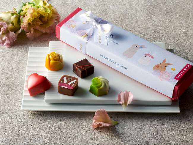 3 匹のうさぎの掛け紙が可愛らしい春のショコラの詰め合わせ「プランタン ショコラセレクション」もご用意しております。
