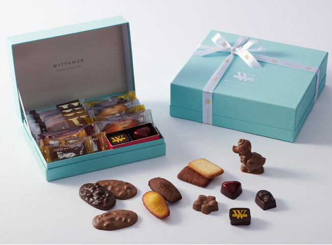 ヴィタメール自慢のショコラをはじめ、人気の洋菓子を詰め合わせたペールターコイズカラーが上品なギフトBOX。洋酒やナッツなど多彩な味わいをとじ込めた、艶やかなショコラ。サクサクのサブレをチョコレートで包み込んだマカダミア・ショコラや、バターの風味が広がるロイヤル・マドレーヌ、サクサク食感のサブレ・ショコラなど、ヴィタメールの人気商品をお楽しみいただけます。