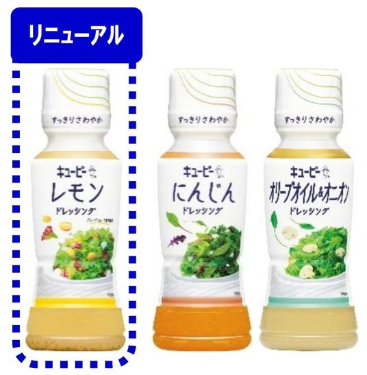 キユーピー株式会社(本社:東京都渋谷区、代表取締役 社長執行役員:高宮 満、以下キユーピー)は、販売が好調な「キユーピー レモンドレッシング」のレモン風味をアップしてリニューアルします。また、「にんじんドレッシング」「オリーブオイル&オニオンドレッシング」とともに、シリーズ名を「緑キャップ」から「ベジキャップ」に変更し、“野菜のおいしさを引き立てるドレッシング”として、よりコンセプトが伝わるデザインに一新します。特設サイトでは、サラダボウル専門店「WithGreen」監修のレシピを紹介するなど、さらなるユーザー満足度向上に加え、トライアルの促進も図ります。