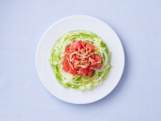 【WithGreen監修レシピ例】レタスとトマトとフライドオニオンのサラダ