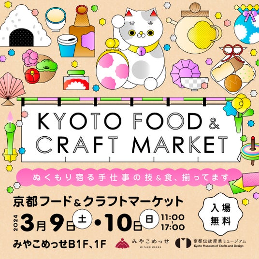 京都市勧業館みやこめっせ(運営:株式会社京都産業振興センター 所在地:京都市左京区)で毎年 恒例となっているマルシェイベント「KYOTO FOOD & CRAFT MARKET」、今回は3月9日(土)~10日(日)の2日間開催いたします。