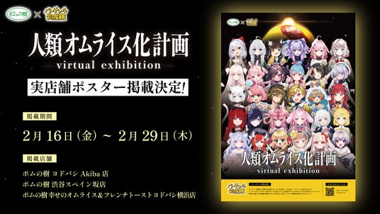 VTuber、IP コンテンツを通して日本と世界で新たな流通を生み出す「IP コンテンツの総合商社」株式会社uyet(本社:東京都渋谷区、代表取締役:金井洸樹・梶田大樹)が実施している「バーチャル物産展」がオムライス専門店「ポムの樹」とコラボ企画を実施。VTuberたちが配信の中で「食レポ」を行い、「ポムの樹」で販売されている冷凍オムライスの魅力を紹介します。