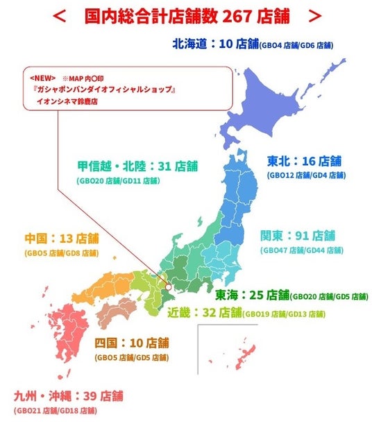 < 国内で展開中のバンダイナムコアミューズメントのカプセルトイ専門店 >