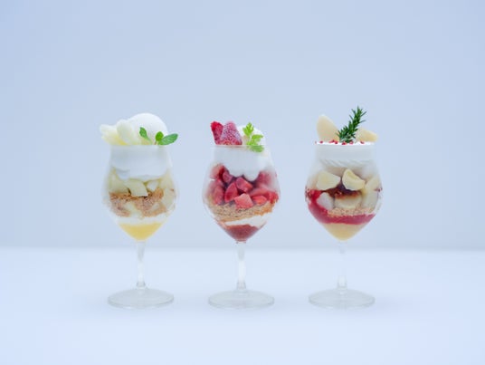 「フルーツとの新たな出会い」をテーマにクリームソーダ4つとパフェ3つの7種類を展開します。春を楽しめるいちごのクリームソーダといちごパフェがおすすめです。
