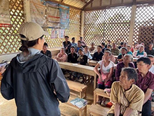 調印式に先立ち、2023年10月に国連WFPラオス事務所、サフロンコーヒー、各県及び各郡の行政関係者との顔合わせを行うとともに、ポンサーイ郡の4村(ロンラット村、チョムチアン村、フアドイ村、ホーアイロンサン村)を訪問し、プロジェクトの概要を現地の住民に対して説明するワークショップを実施しました。
