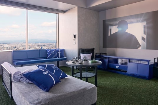 ドラゴンズファンには堪らない、「中日ドラゴンズ」とのコラボルームが誕生!客室の床にはバンテリンドーム ナゴヤと同じ人工芝が敷き詰められ、ベンチシートやロッカーを模した作りで、選手気分を味わえます。ここでしか見られないウェルカムムービーや、チームの歴史が一目でわかる年表も必見。プロジェクターにご自身のデバイスを繋ぎ、大きな壁面に映し出しての試合観戦も可能です。