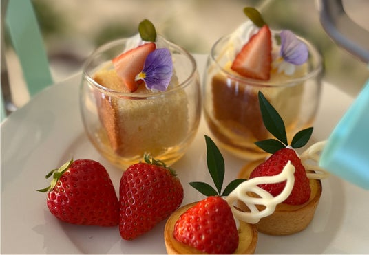 ババ/いちごのパスティチョット/アーモンドのパンナコッタ/桜のマリトッツォ/イースターエッグクッキー/いちご/スコーン2種 (プレーン・ピスタチオ)いちごシャムとクロテッドクリーム添え