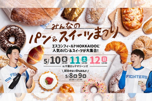 5月8日(水)~12日(日)の5日間、エスコンフィールドHOKKAIDOで《みんなのパン&スイーツまつり》を開催いたします。人気のパン&スイーツ店が大集合するほか、Fビレッジ内各店舗でスイーツ企画も実施。さらに、ファイターズ選手のコラボパンも販売します。