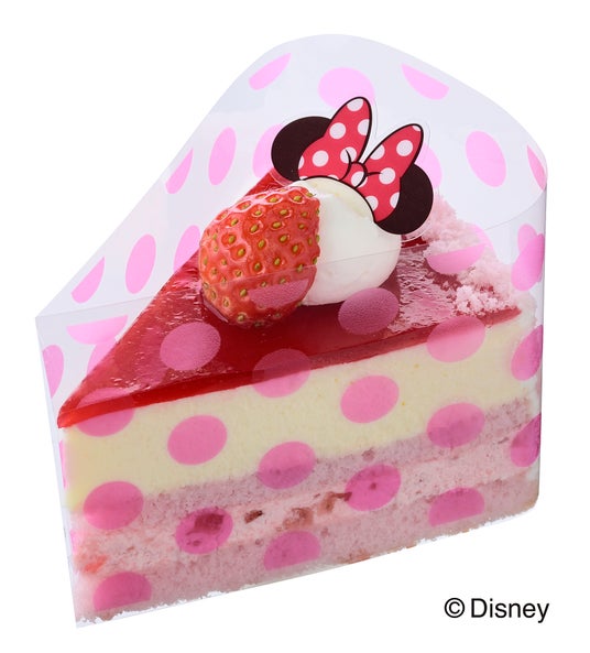 苺ゼリー入り苺クリームをサンドした苺風味スポンジにチーズムースをのせ、ラズベリージュレで仕上げたケーキは、甘ずっぱさとまろやかさが心地よいケーキ。赤やピンクのポップな色合いからは、ミニーマウスのようなキュートさや明るさをもらえそう♪