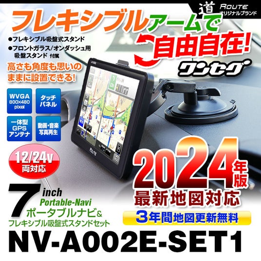 MAXWINポータブルナビ「NV-A002E」フレキシブルアーム付属版ワンセグ内蔵7インチポータブルナビフレキシブルアーム付属、ナビの高さや角度を自由自在に調節いただけます。