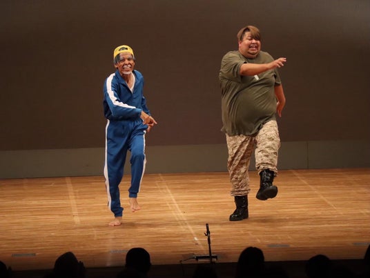 ▲うちなんちゅと米兵のやり取りをコントにして上演