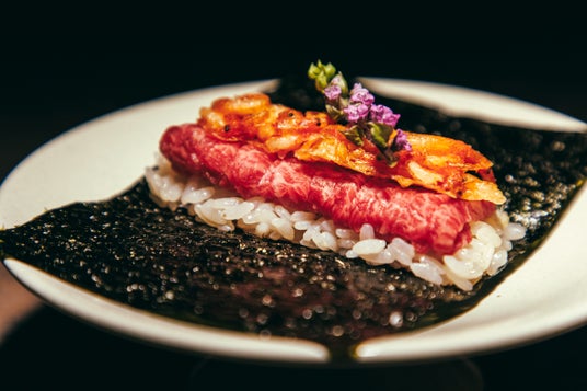 艶やかな和牛に鮮度抜群の生雲丹を添えた、見た目も華やかな逸品です。生雲丹のとろける食感と赤身の凝縮した旨みをご堪能いただける、贅沢な組み合わせの手巻きです。