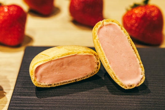 甘酸っぱい“あまおう”の苺アイスクリームを、提供直前に焼くことでサクッと軽やかに仕上げた最中でサンドしました。職人のひと手間を加えた上品なデザートです。