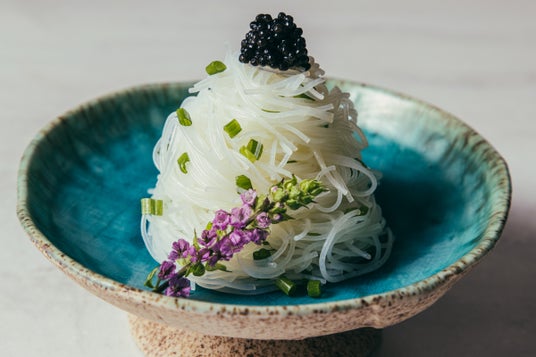 シェフが趣向を凝らした季節のビーフン。手間暇を惜しまず厳選素材で仕込んだ自家製“鶏湯(チータン)”をベースに、黒い宝石”キャビア”をあしらいました。濃厚な鶏の旨みとキャビアの塩みが絶妙に調和する前菜です。
