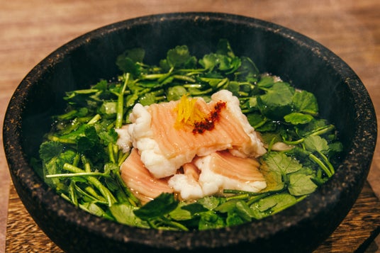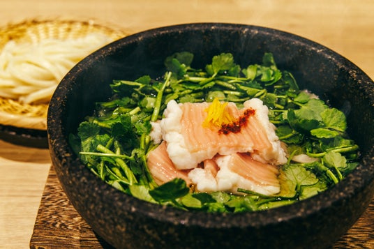 和牛テールと和出汁を合わせた特製スープに柔らかく炊いた“シマチョウ”と旬の“芹”を添えて、熱々の石鍋で提供いたします。芹の爽やかな香りとシマチョウの旨みが調和する逸品です。