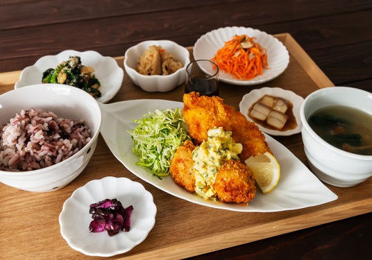 えらべるメインのおかずと、副菜やごはん、みそ汁などがセットになった人気のランチメニューが、春メニューにリニューアルしました。メインのおかずには、人気の「揚げ鶏のねぎソース」に加え、照り焼きチキンと春野菜にホワイトソースとチーズをのせて香ばしく焼き上げた「照り焼きチキンと春野菜のチーズ焼き」や、サクッと揚げたサバに色どり豊かな春野菜とクリーミーなアボカド豆腐ソースを合わせた「サバの竜田揚げ アボカド豆腐ソース」が登場します。