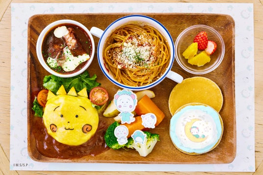パステルカラーの優しい色合いで表現されたコジコジとなかまたちがお皿の上に集まる、愛らしさと遊び心に溢れたお食事をお楽しみください。