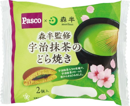 「森半監修 宇治抹茶のどら焼き 2個入」は、宇治抹茶クリームと北海道十勝産小豆の粒あんを、宇治抹茶入りのどら焼き生地ではさんだ商品です。クリームだけでなく、生地にも抹茶を練り込むことで、より抹茶の風味をお楽しみいただけます。