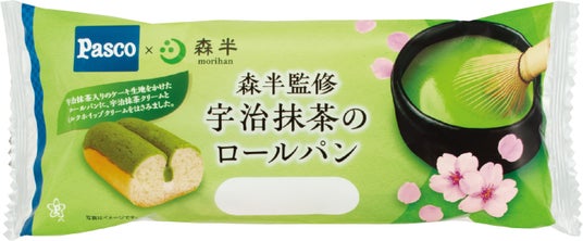 「森半監修 宇治抹茶のロールパン」は、ほんのり甘いふんわりとしたロールパンに、宇治抹茶入りのケーキ生地をのせ、宇治抹茶のクリームと北海道牛乳のホイップクリームをはさんだ商品です。北海道牛乳入りのやさしい甘さのホイップクリームが、宇治抹茶クリームのほろ苦い味わいを引き立てます。