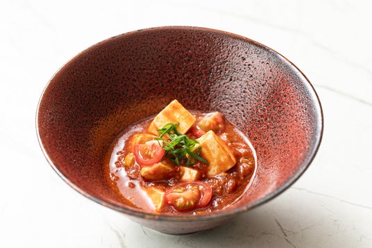 コースの締めくくりは、薬膳ブイヨンを使ったラーメンやスッポンの冷製カッペリーニ、トマト麻婆豆腐など3種類からお選びいただくスタイル。中でも、ハーブの香り豊かなサルシッチャとトマトを使った麻婆豆腐は、福島県いわき市でトマト・ガストロノミーに取り組んだシェフだからこその一品。ターメリックライスと共にご提供します。