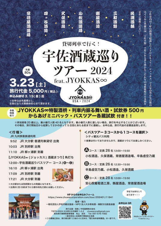 【 宇佐酒蔵巡りツアー2024 feat. JYOKKAS∞ お問い合わせ先 】