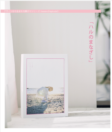 「家族の普段の姿を撮る」ことが大森さんの仕事です。気取らない日常の、ありふれたシーンこそ本当の倖せがあること。我が子を見守る親たちのまなざしにまごごろが溢れていること。ファインダーを覗くたびに大森さんが実感する「あたたかいまなざし」の世界を春らしいパッケージに織り込んでみました。